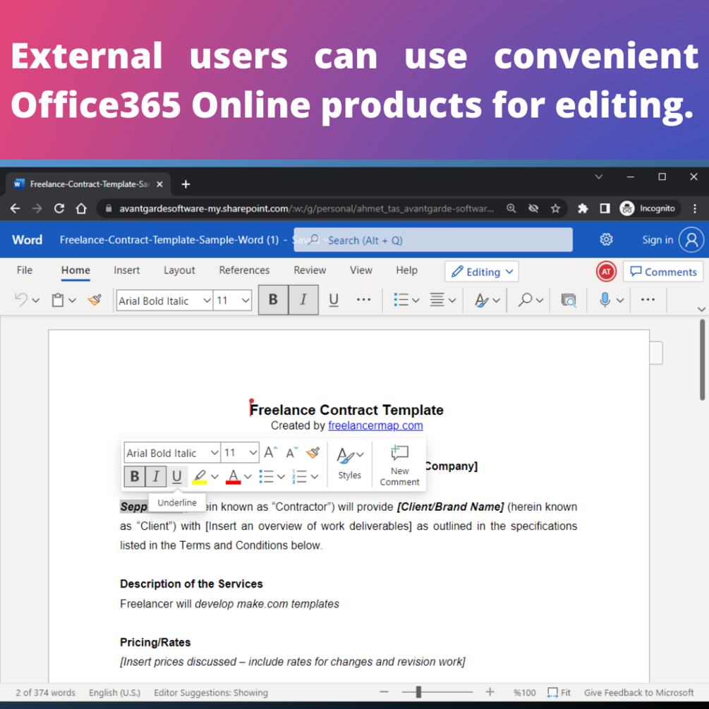 Sharing documents from DocuWare with externals (non-DocuWare users) for a period of time AND SYNC BACK CHANGES FROM ONEDRIVE