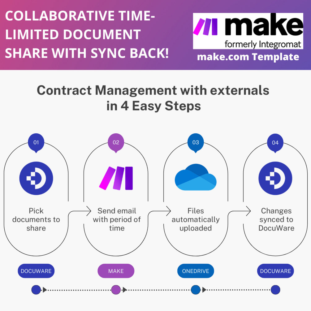 UNLIMITED access to make.com templates for sharing documents from DocuWare to OneDrive& syncing changes back to DocuWare.
